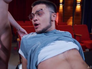 Nicky Zeal, Jade Venus, and Ariel Demure are at the movie theater. After getting some snacks, they sit down together to watch the movie, with Ariel sitting between Jade and Nicky.Ariel and Jade see that Nicky is too busy watching the commercials on the movie screen to notice what they're doing, so Ariel naughtily gives Jade a blowjob while Jade uses her cardigan to try to hide the action. Nicky then leaves to get more snacks, and when he comes back he asks Ariel to switch seats so he can be between the two ladies.Now that Nicky is sitting between Jade and Ariel, he gives Jade a canister of chips, and Ariel a box of popcorn. Still in the mood for more sexy fun, Jade sticks her cock through the bottom of the chips canister, and Ariel sticks her cock through the bottom of the popcorn box. When Nicky reaches into both containers to get some snacks, he finds something much tastier... the ladies' cocks! With that, it's time for the REAL feature presentation: a hot threesome!