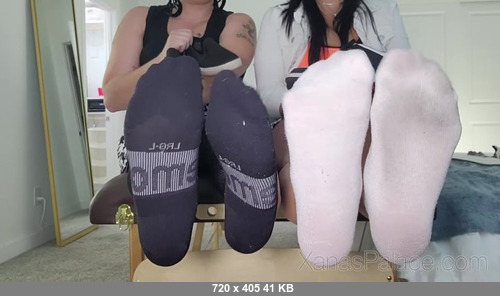 Xana and Annika have you right where they want you... down at their sexy soles! They flaunt their heavily scented ankle socks right in your face as they take deep whiffs of their own footwear. They slowly reveal their sexy, perfect bare feet while commanding you to lick up and down their soles, making you use your tongue to clean in between their toes.